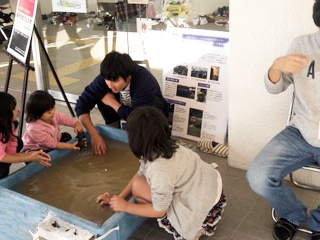 ![]() 展示ブースの様子 | ![]() 舞鶴湾の生き物に触れることのできるタッチプール |