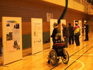 ![]() 展示物を見る参加者 | ![]() 講演の様子 |