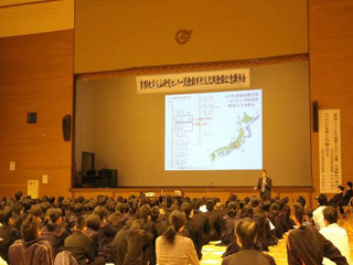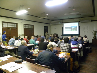 ![]() 熱心に聞き入る参加者ら | ![]() 講演の様子 |