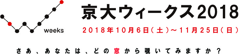 2018年度は、10月6日(土曜日)~11月25日(日曜日)を「京大ウィークス2018」とし、北海道の研究林や桜島の火山観測所など計25の施設で、施設見学会や講演会、体験実験、自然観察会など、皆さんの知的好奇心を刺激する魅力いっぱいのイベントを実施します。