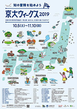 2019年度は、10月5日(土曜日)~11月10日(日曜日)を「京大ウィークス2019」とし、北海道の研究林や桜島の火山観測所など計25の施設で、施設見学会や講演会、体験実験、自然観察会など、皆さんの知的好奇心を刺激する魅力いっぱいのイベントを実施します。