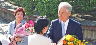本庶佑 高等研究院副院長・特別教授に花束贈呈が行われました。(2018年10月2日)