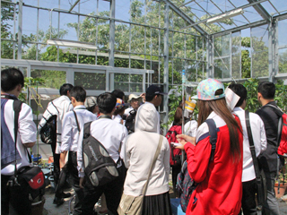 The participating students attended a lecture entitled "Agri-Food World in Japan: Present and Future," presented by Associate Professor Akitsu. They also visited the experimental farm of the Graduate School of Agriculture, Fujita Forestry, the Log Producer's Association, Kayabuki-no-sato, the Otsu and Southern Shiga Agricultural and Rural Development Promotion Office, the terraced rice-fields of Ritto City, the Kyoto Prefectural Biotechnology Research Department, the Tea Industry Research Division, and the Suntory Brewery. Students gained insight into Japanese agriculture, forestry, and environmental issues via the lecture and the visits. They also examined ecosystems and eco-preservation activities in the Lake Biwa area during the field trip to Lake Biwa Museum.