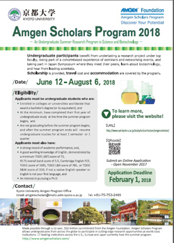 Kyoto University is pleased to announce the opening of applications for the 2018 Kyoto University Amgen Scholars Program.