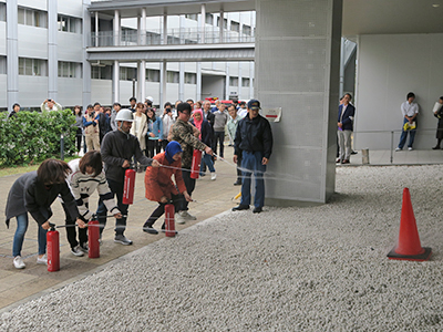 On 30 October, the Uji Campus hosted a comprehensive disaster drill in cooperation with the local Uji-shi Higashi Fire Station. The drill assumed a Nankai Trough Earthquake with a seismic intensity of "6 lower" on the seven-point Japanese scale affecting the local area. More than 1,000 faculty, staff, and students, including members of the Uji faculty-and-staff fire brigade, participated.