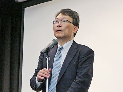 Following opening remarks from KU Hospital Director Nobuya Inagaki, Dr Takeru Makiyama, assistant professor of KU Hospital's Department of Cardiovascular Medicine, delivered a lecture entitled "Drug efficacy evaluation and development of new treatment for inherited arrhythmia using human iPS cells". Three academic lectures then introduced their latest achievements in the field: "Peripheral nerve regeneration using Bio 3D Conduit fabricated by the bio 3D printer technology" by Dr Ryosuke Ikeguchi, associate professor of the Rehabilitation Unit of KU Hospital's Department of Orthopedic Surgery; "Generation of intestinal tissues using iPS cells" by Dr Yoshiya Kawaguchi, professor of the Center for iPS Cell Research and Application (CiRA); and "Research on neurological diseases using iPS cells" by Dr Keiko Imamura, program-specific research center assistant professor of CiRA.