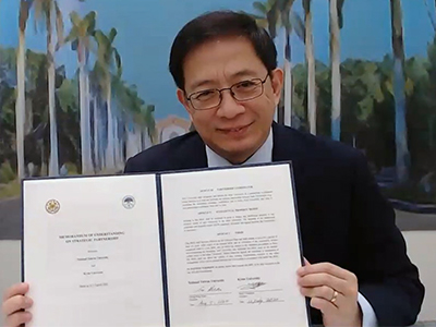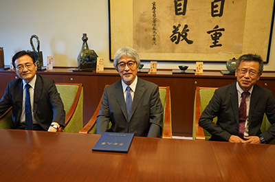 Signing ceremony with National Taiwan University: KyotoU President Yamagiwa
