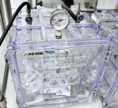 サンプルは、酸素の影響で物質が変化しないよう、真空状態で保存される。「いまは5つの粒がこの中にあります。だから、5億円ぶん(笑)」。比較して解析ができるよう、月のサンプルもこのなかに