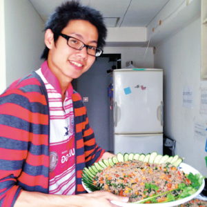 寮のキッチンでは母国の料理をつくることも。ちなみに、好きな日本食は「迷わずラーメン!」