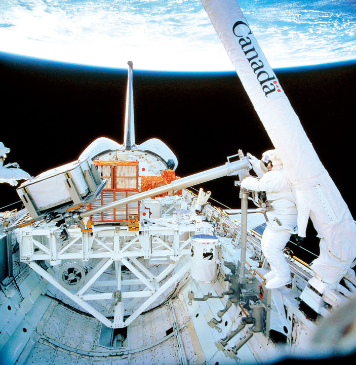 船外活動をする土井隆雄特定教授(写真提供:宇宙航空研究開発機構〈JAXA〉)