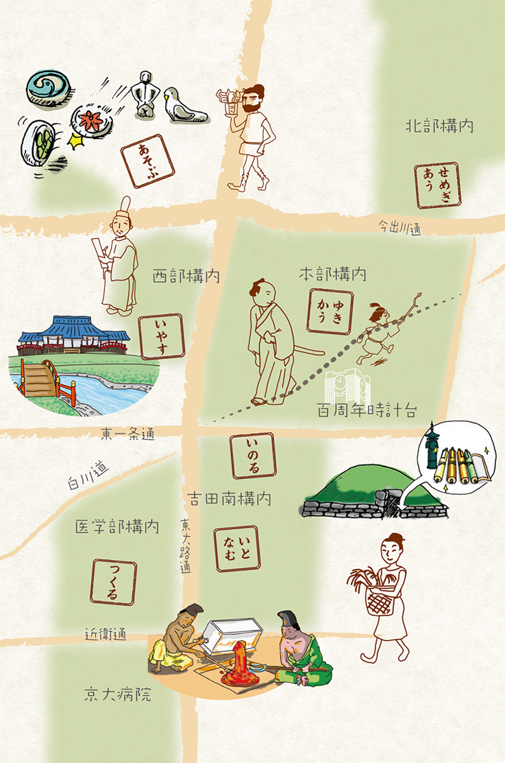 京都大学が吉田の地に設置されたのは一八九七年のこと。その八年前まで、この一帯は愛宕郡吉田村とよばれていた。明治になるまで、「みやこ」は鴨川をへだててすぐそこにあった。キャンパス周辺から出土した「お宝」を中心に、このまちの古い姿に思いをめぐらせてみた