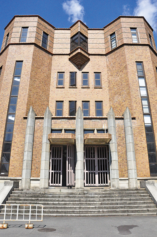 1922年に竣工。京都大学ではじめての瓦屋根をもたない建築。斬新な意匠と、当時の最新の構造技法がつかわれている。