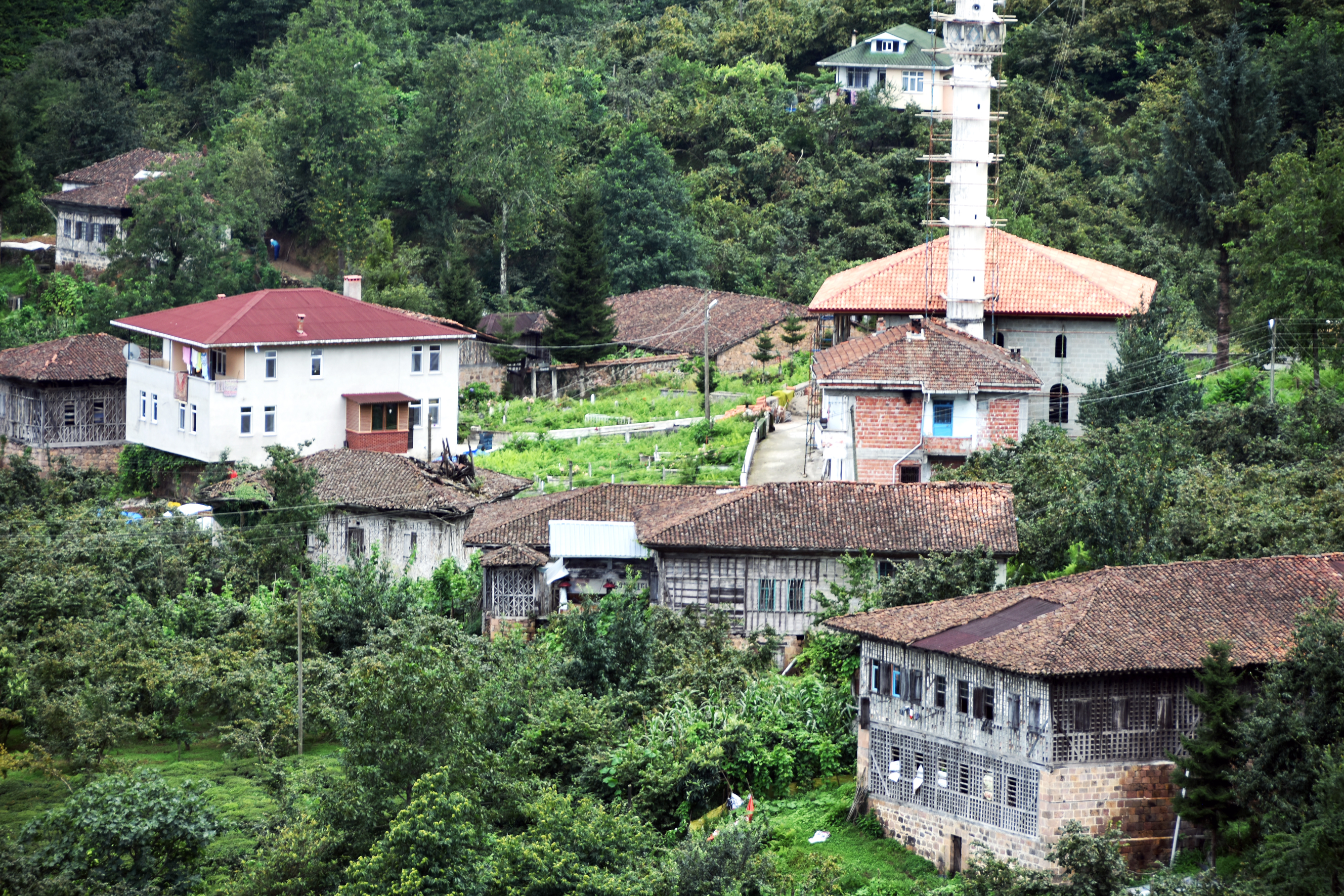 トルコの農村の風景。手前に見える伝統家屋に対して、白く目立つのが新しいコンクリート造りの家屋