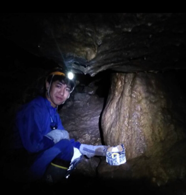滋賀県の佐目風穴という洞窟。部員は自身の興味に応じたアウトドア活動を行なっている