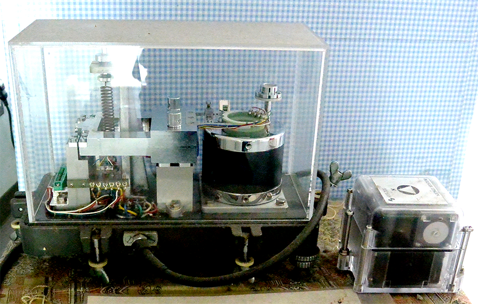 従来の地震計(左)と満点計画で開発した地震計(右)