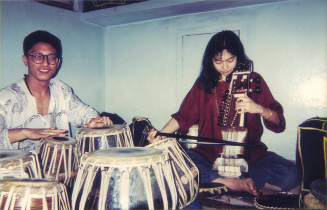 2回生の頃、インドに旅行し、現地の方に民族楽器の演奏を教わった