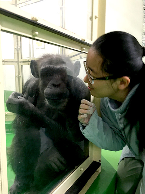 「いつかは家族のいる中国に帰って研究を続けたいです。中国の霊長類研究は、生態や行動に関するものがほとんどで、認知の研究は発展途上。私がもっと進展させたい」。ガオさんをつきうごかすのは純粋な探究心と霊長類への好奇心。研究所のチンパンジーたちとともに、宇宙のように果てしなく拡がる認知の謎を解き明かしてくれるに違いない。