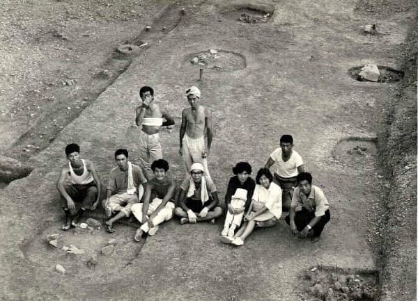 1966年、考古学研究会の発掘風景。前列の左から3人目が吉野さん。吉野さんが発掘調査に参加した樫原廃寺(京都市西京区)は、考古学研究会の調査が契機となり、1971年に国史跡に認定され、現在は史跡公園として市民の憩いの場になっている(写真提供・旭化成)