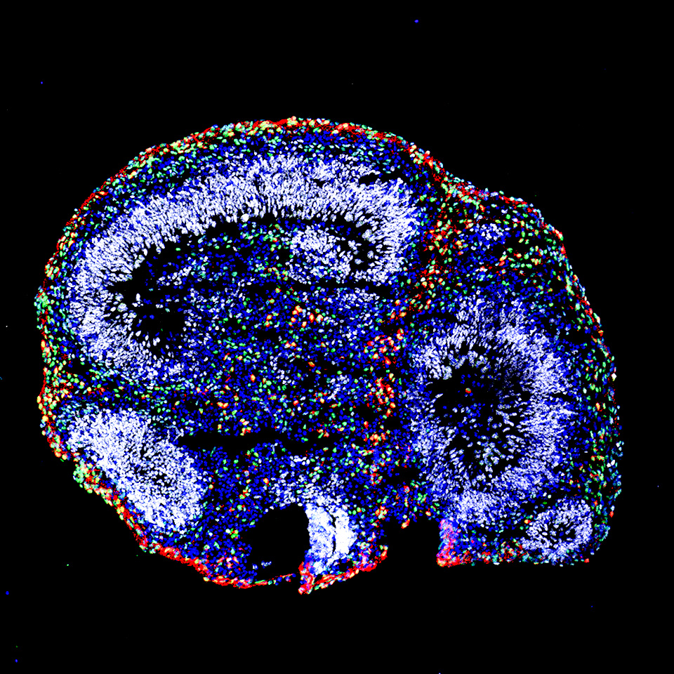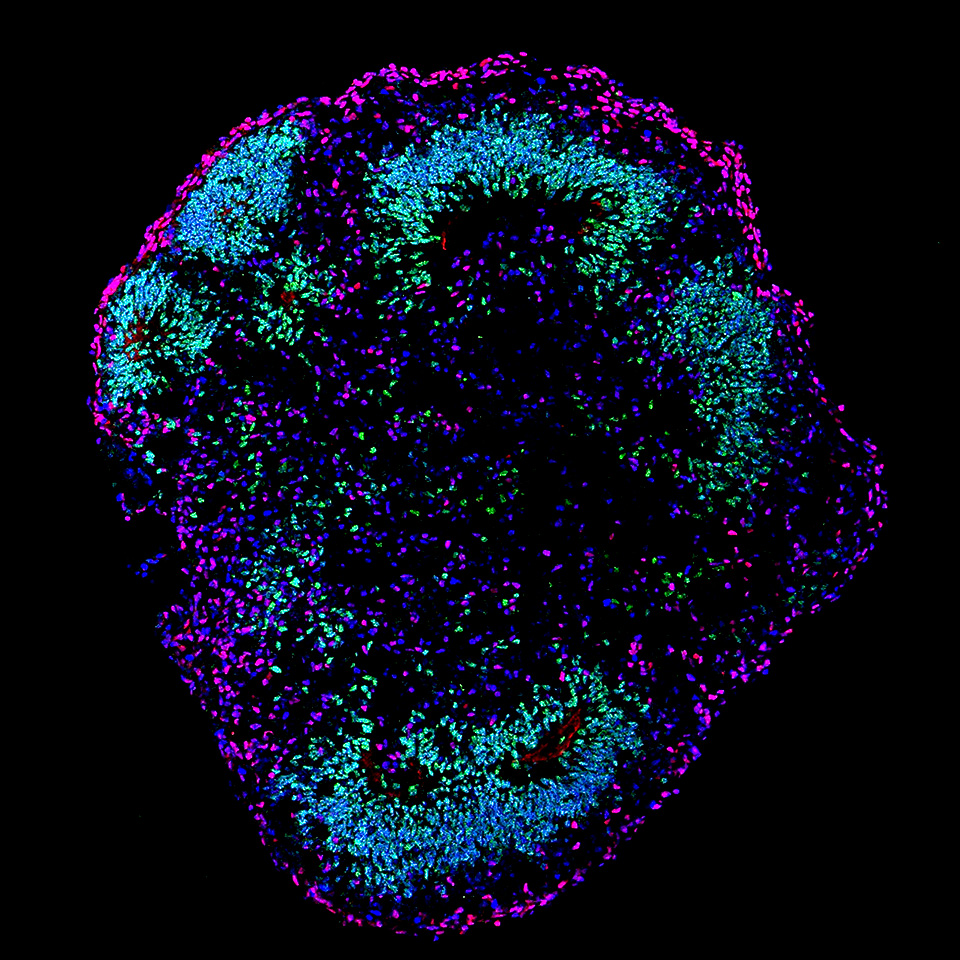 研究対象とする最先端技術の一つがオルガノイド技術。培養皿でiPS細胞など多能性幹細胞から作られる3次元の組織はオルガノイドと呼ばれ、神経領域では大脳、小脳、海馬、中脳、視床、脊髄など、その他の臓器では腎臓、肝臓、胃、腸などの作製に成功している。