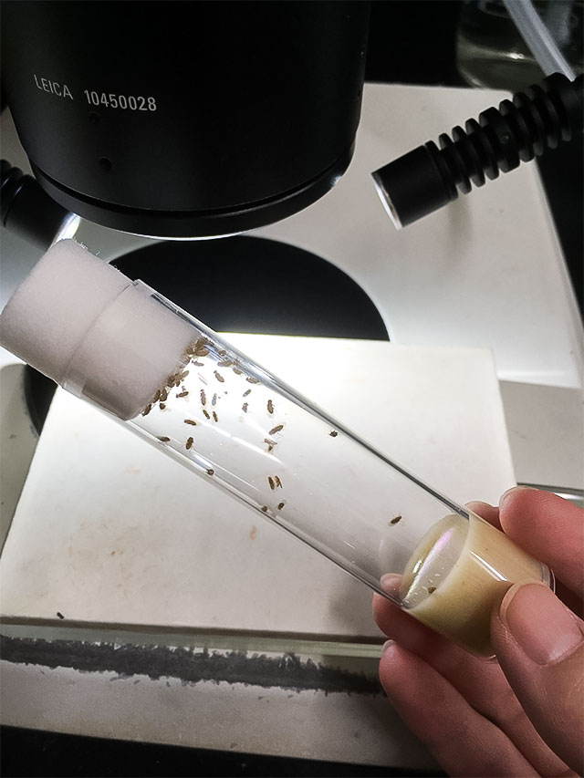 実験に使うショウジョウバエ