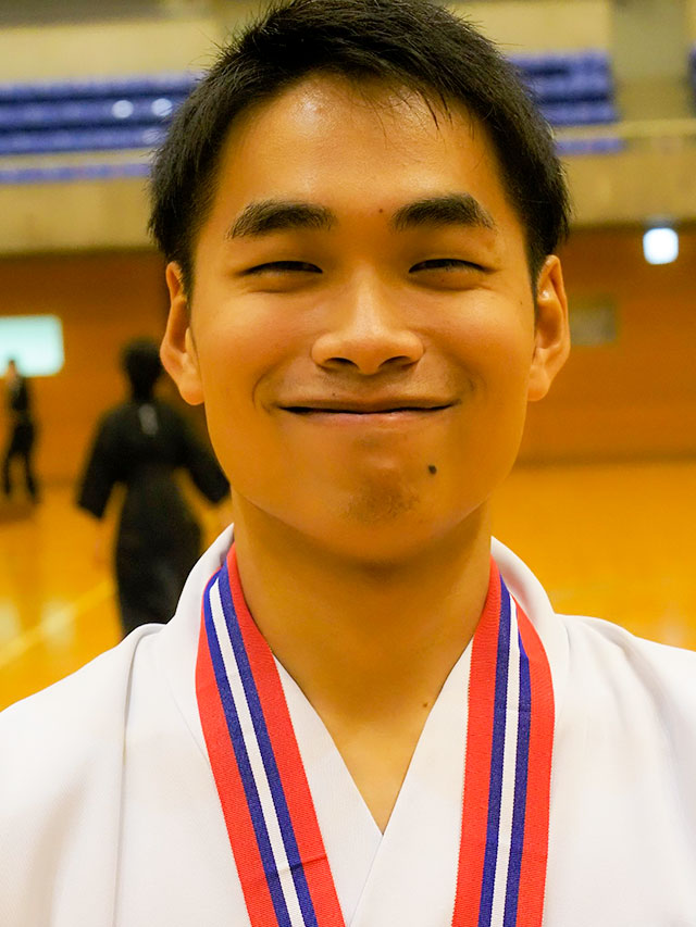 勢いよく立ち上がりながら抜刀、続けざま振り降ろす刀が縦一文字に空を裂く。凛とした緊張感が張りつめたまま、刀は鞘へと厳かに納められる。心技体を一つに繰り出す技の正確さや美しさ、迫力を競う武道が居合道だ。2019年に開催された第34回全日本学生居合道大会にて、京都大学居合道部は個人戦で優勝と準優勝、団体戦でも優勝という華々しい戦績を収めた。その団体戦に当時2回生としてただ一人出場したのが、現主将・上松拓生さんだ。