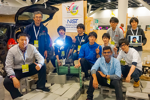 世界大会優勝時のメンバー。工学研究科の松野文俊教授(左から2人目)のもと、院生を中心にロボット開発に励む