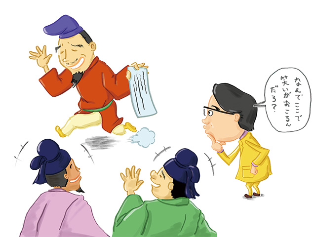 とすれば、冒頭の「憶良ら」の歌は子煩悩の作者による惚気だろうかと問い直す意義はあります。この歌を聞く人たちにも私度僧の社会問題は共有されているはずです。「憶良ともども、みんな家族の待つ家に帰りましょう」とは、その時代に生きる人たちや社会に投げかけられた歌であったとはいえないでしょうか。宴席から退出する歌に私度僧を巡る政治的なプロパガンダの意味を込めることで、この時代を生きた宴席の参加者には「同意するよ」という意味での笑いを誘ったのでしょう。そのようにみるなら、「憶良ら」の接尾語ラは謙譲表現ではなく、憶良を含めた我々複数を表すとみるほうが、語法的にも無理がありません。