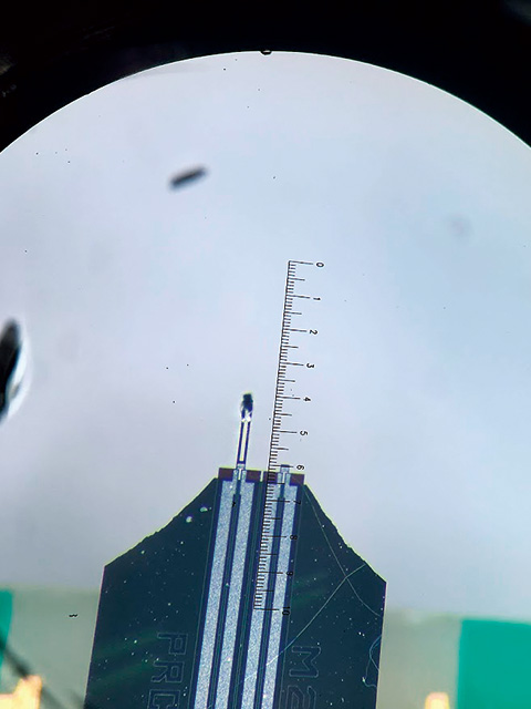実験で測定した銅酸化物結晶。ひと目盛は20μmという極小世界