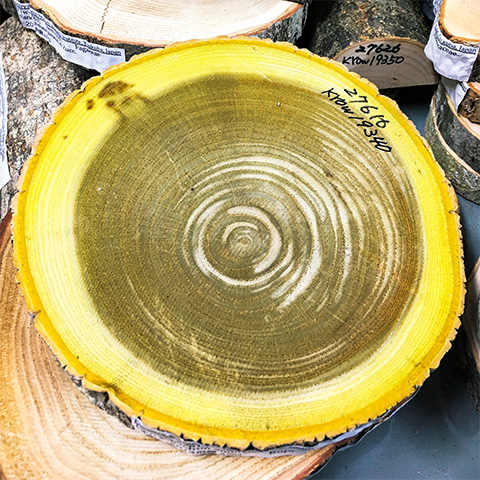 キハダの幹の断面 (提供・材鑑調査室 田鶴寿弥子助教)
