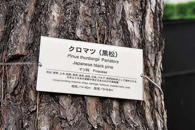 キャンパス内の樹木の一部には、樹木の情報を記載したラベルが巻きつけられている。種名や学名のほか、木材の用途や樹高、直径なども知ることができる。「島田幹夫、伊東隆夫両教授(現 名誉教授)の働きかけで始まりました。ラベルの作成や設置時には私も関わりました」。