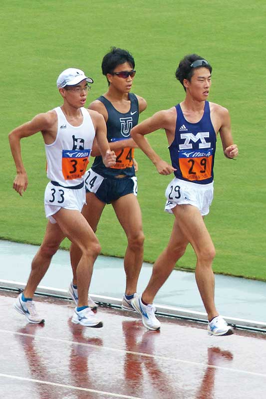 2016年9月4日、大学3回生で出場した第85回日本学生対校選手権(熊谷インカレ)。10000m競歩を40’38”01で優勝(左が山西さん)