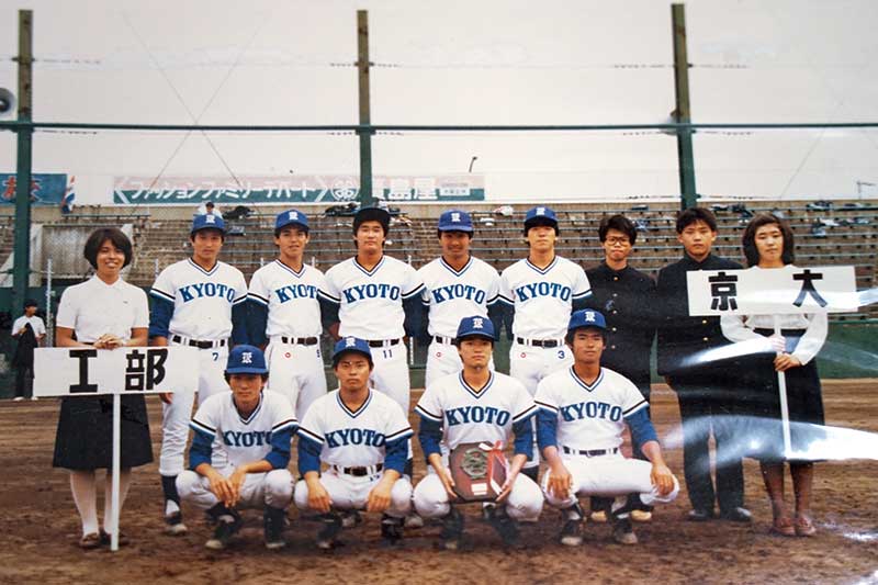 西山教授の80年代。野球同好会で主将を務めた。(写真提供・西山教授)