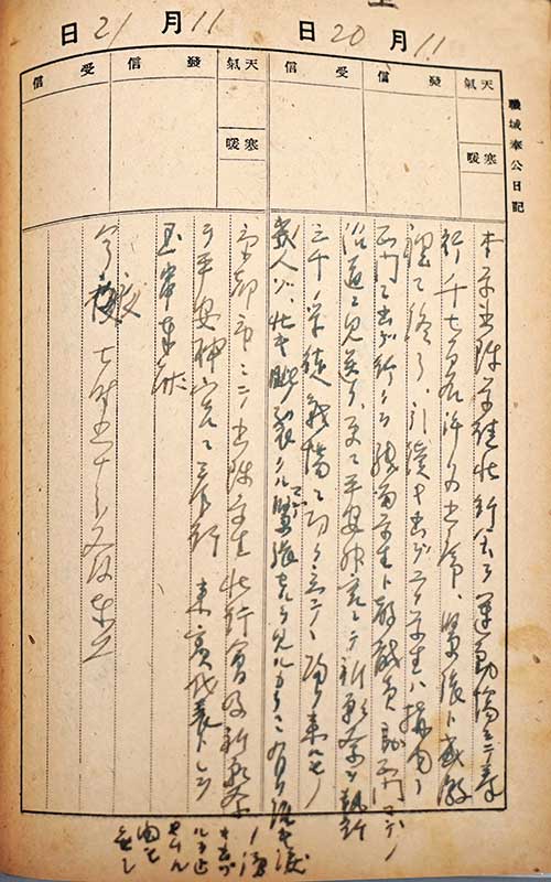 京都大学で出陣学徒の壮行式が開かれた1943年11月20日の日記(京都大学大学文書館所蔵)