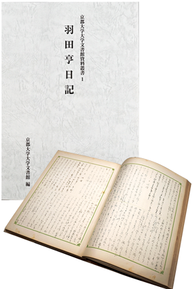 白い表紙の冊子は、日記を翻刻し、掲載した「羽田亨日記」(京都大学大学文書館所蔵)