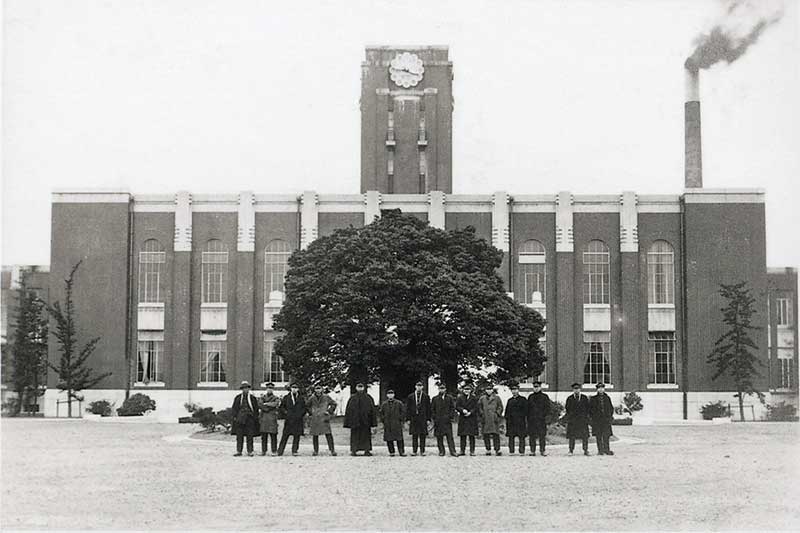 時計台の前で学生たちの記念写真(1928年、京都大学大学文書館所蔵)