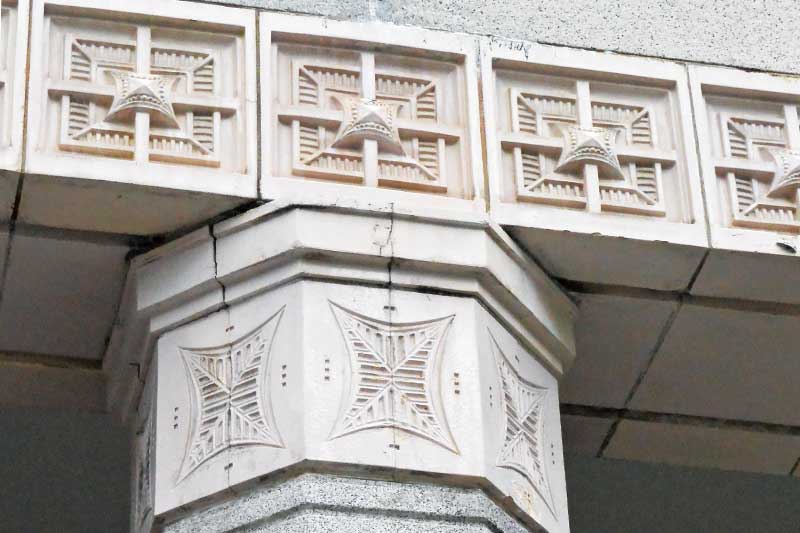 玄関独立柱の柱頭とエンタブラチャーの装飾
