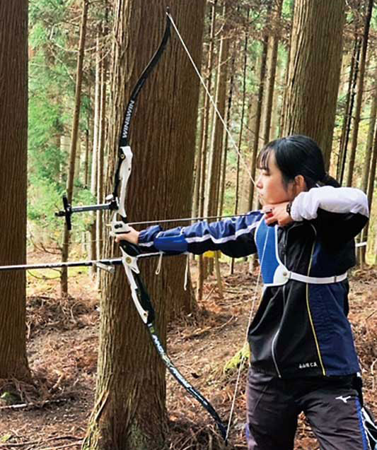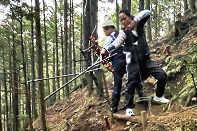 1年の締めくくりとして、毎年12月に山の中で「納射会」を開催。アーチェリー競技の一種であるフィールド・アーチェリーのルールに則り、山の中に標的を設置し、得点を競う