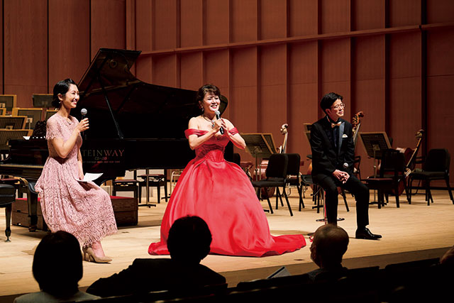 京都大学の卒業生であるソプラノ歌手の飯田みち代さん、チェリストの谷口賢記さんと京都市交響楽団の共演による記念音楽会を開催。指揮に広上淳一さん、ピアノにイリーナ・メジューエワさんを迎え、卒業生の酒井千佳さんの司会のもと、1,000名を越える聴衆を前に迫力ある演奏を披露しました。ステージの合間には卒業生3名のトークセッションも繰り広げられました。