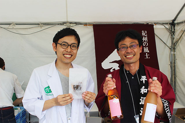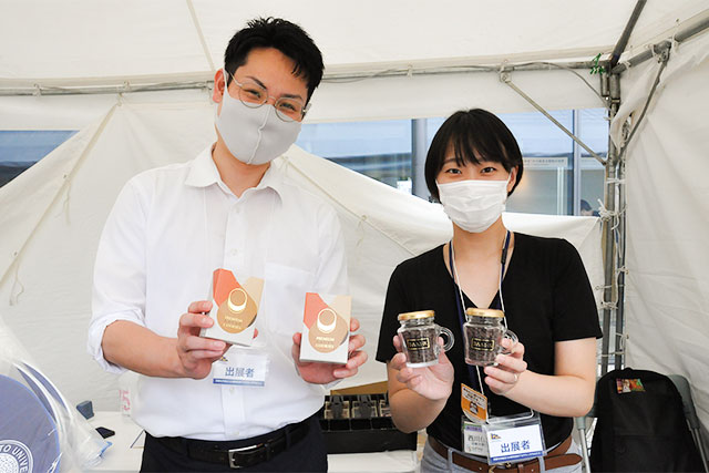 この日のために開発された平和酒造とのコラボ商品「完熟梅酒梅甘納豆」。平和酒造の梅酒に漬けられた梅を再利用。
