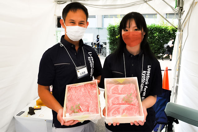 ブランド牛「京大紅牛(くれなゐビーフ)」の予約販売を実施。「しっかりと脂がのり、あっさりとした肉質が特徴です」。(農学研究科附属牧場)