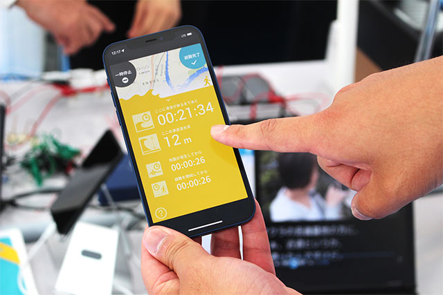 実際のハザードマップを基に、津波発生から到達までの間に安全な場所まで逃げられるかどうかを試せるアプリ「逃げトレ」。「旅行で海辺に行くときに使うなど、津波への備えに役立てて」。(防災研究所・矢守克也研究室)
