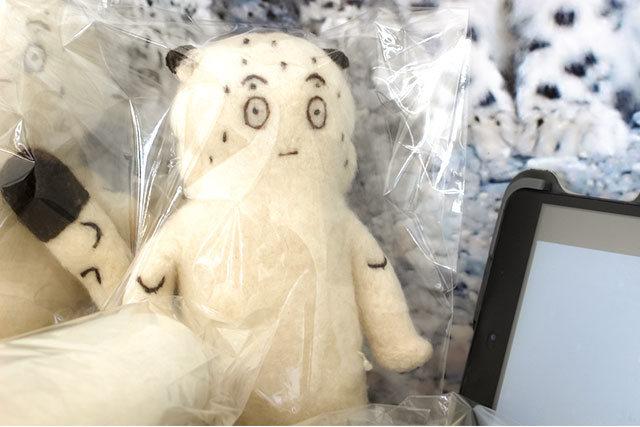 出迎えるのは、愛らしい目をしたユキヒョウのぬいぐるみ。「ユキヒョウの暮らすキルギスの方たちの手作りです。絶滅の危惧されているユキヒョウを一緒に守ろうという想いを込めました」(木下こづえ助教)。ユキヒョウが暮らす環境にも目を向ける展示が多数。