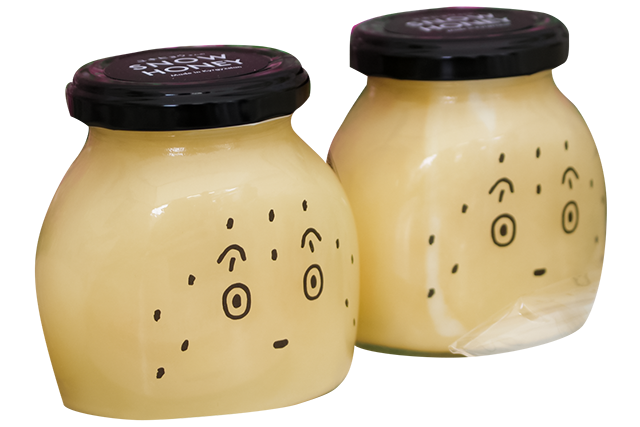 ユキヒョウの住む山の近くに生息する花でつくった白いハチミツも。ユキヒョウのグッズは子どもたちに大好評。
