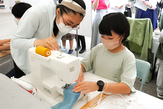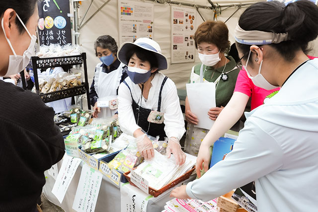北山杉を利用したお箸作りや着物の端材を使った箸袋作りを体験。生薬としても使われるクロモジの葉からつくるお茶など、京北地域の住民による特産品も販売。「地域の自然素材のことは、地元の方ほどよくご存じ。地域の知を知ってもらい、交流の機会になれば嬉しいです」(浅利美鈴准教授)。