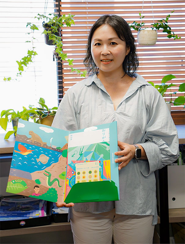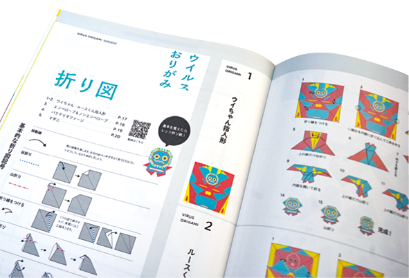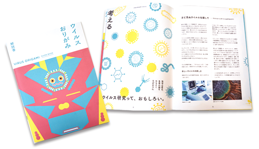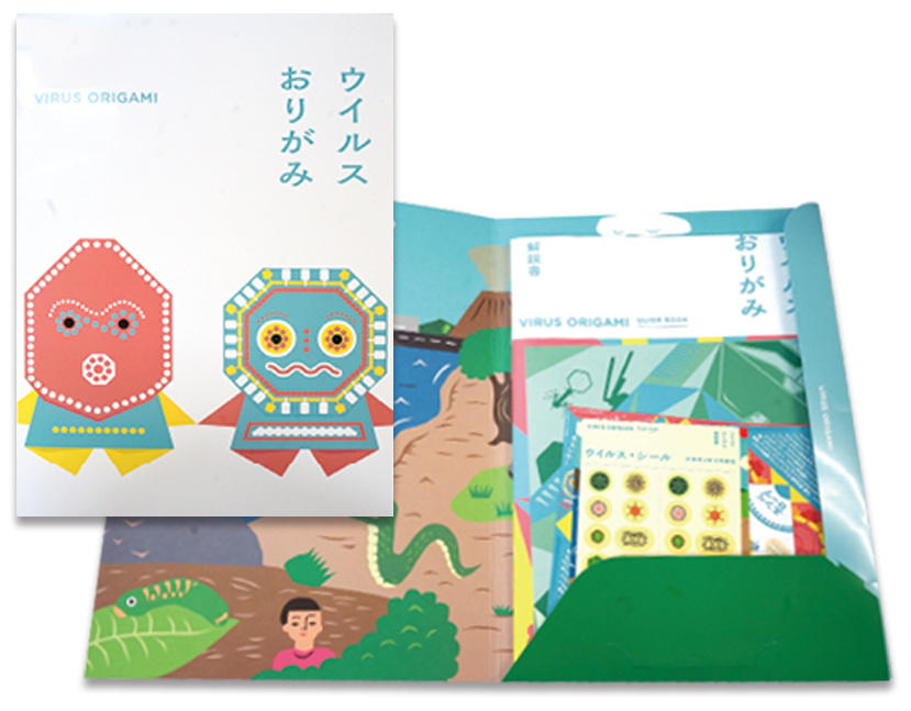 キャラクターをあしらったファイルには、解説書と18枚の折り紙、3枚の千代紙が収められている。ウイルスの形が宿主ごとに異なることを学べる「ウイルス・シール」も付属