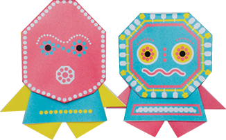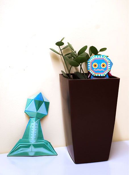 折り紙は5種類。折り図を見ながら折り進めると現れたのは、ウイルスを模したキャラクターやファージ(細菌に感染するウイルス)やマダニたち!