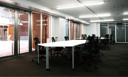 国際科学イノベーション棟の1階に設置された京都大学ベンチャーインキュベーションセンター(KUViC)では、ベンチャー企業が本社機能を置ける場所を提供。大学内に設置することで、創業前後のベンチャー企業の経営チームと研究者とが密に協働できる
