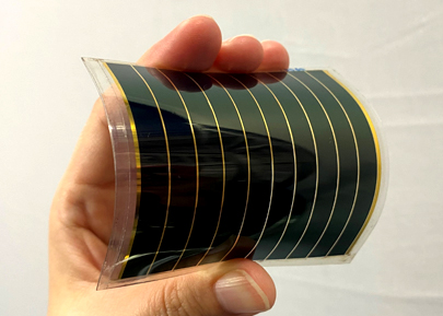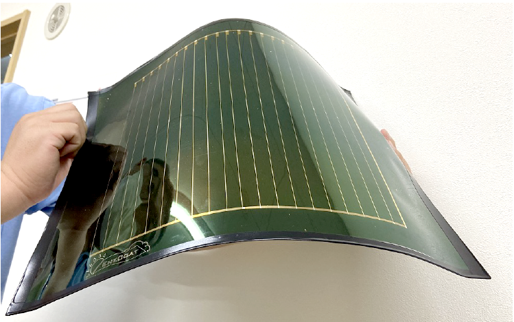 超薄型ガラスやフィルムなどを基材にした、柔軟性のある軽量太陽電池が実現可能