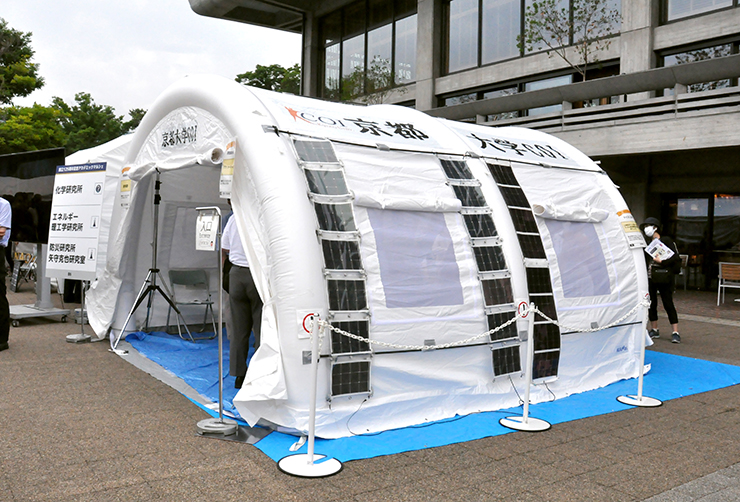 災害用テントにペロブスカイト太陽電池を設置。実証実験に成功
