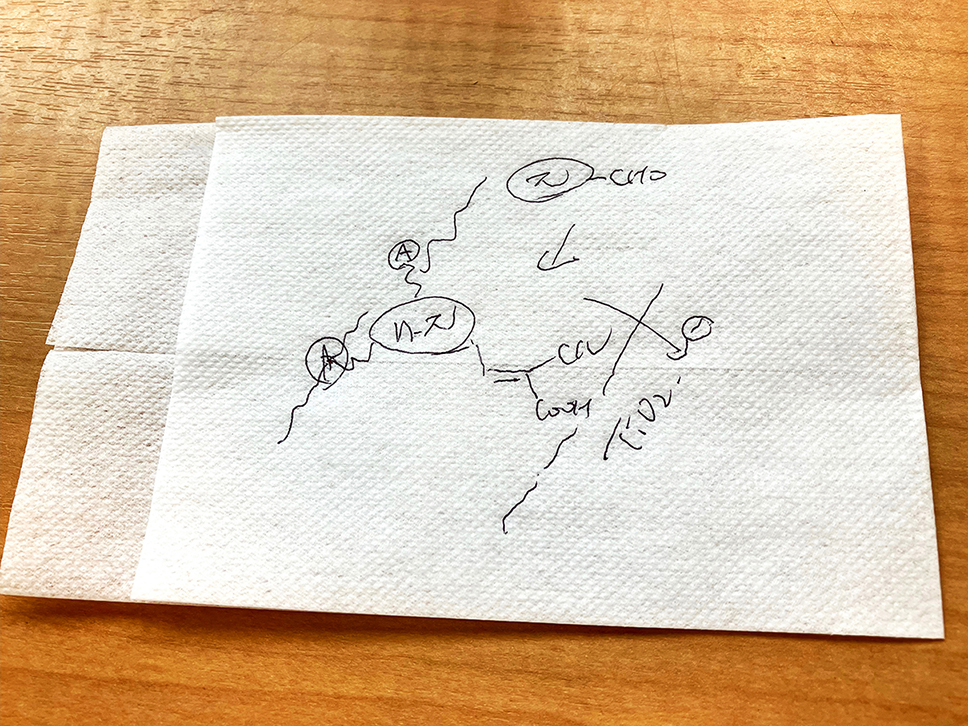 「四六時中、研究について考えています。そうすると、歩いているときやシャワーを浴びているとき、ご飯を食べているときなどにハッとアイデアが浮かぶことがあるのです。そんな時、近くにある箸袋や紙ナプキンに書き留めています。自分のアイデアだからこそ、研究は楽しいんです」
